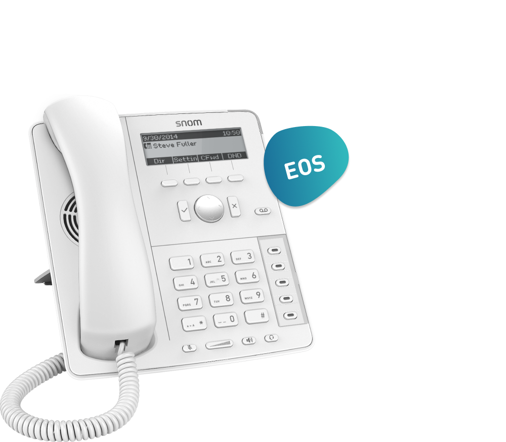 Das Snom D715 bietet Breitbandaudio in bester Qualität. Es ist in Schwarz und Weiß erhältlich und besitzt einen USB-Anschluss. Daher unterstützt es neben dem Snom USB Headset Snom A150 und dem Snom D7 Erweiterungsmodul auch den DECT-Dongle Snom A230 sowie den WLAN-Dongle Snom A210.