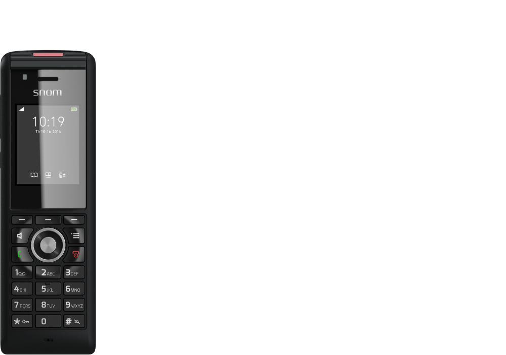 The cordless DECT handset Snom M85 was specially developed for use in working environments with potential danger. Various alarm functions are used for safety or for alerting in critical situations. These alarms are triggered both manually, e.g. by pressing the alarm key, and, sensor-supported, automatically.
