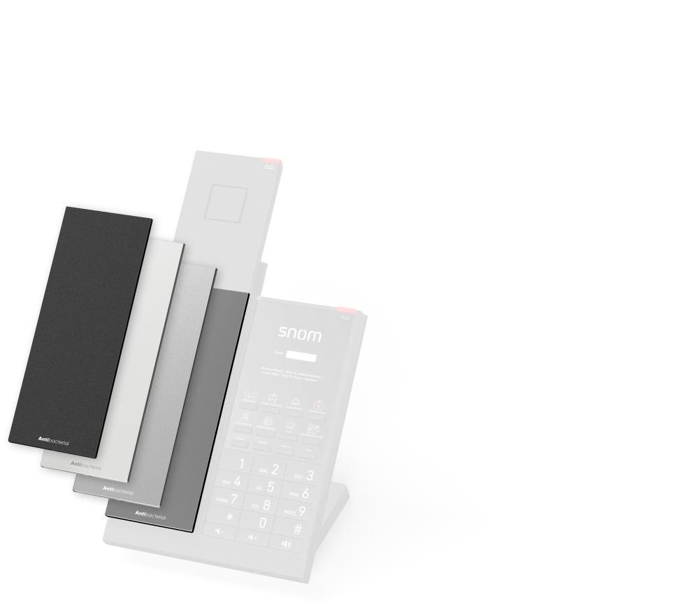 Además de la cubierta del microteléfono suministrada con aspecto de metal de cañón, ahora puede adquirir una de las tres cubiertas intercambiables adicionales en blanco perla, negro o plata. Fáciles de colocar sin herramientas, ¡una pequeña inversión que marca la diferencia según el entorno!