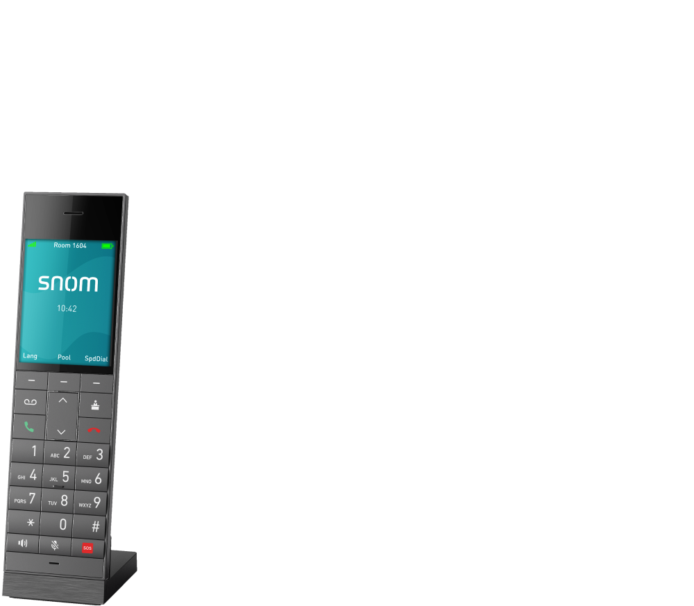 Con el Snom HM2 podrá ampliar su Snom HM201 con hasta cuatro microteléfonos inalámbricos adicionales y ofrecer así a sus invitados todas las ventajas en un espacio más amplio, ya que podrá realizar llamadas hasta en cinco ubicaciones/habitaciones.
